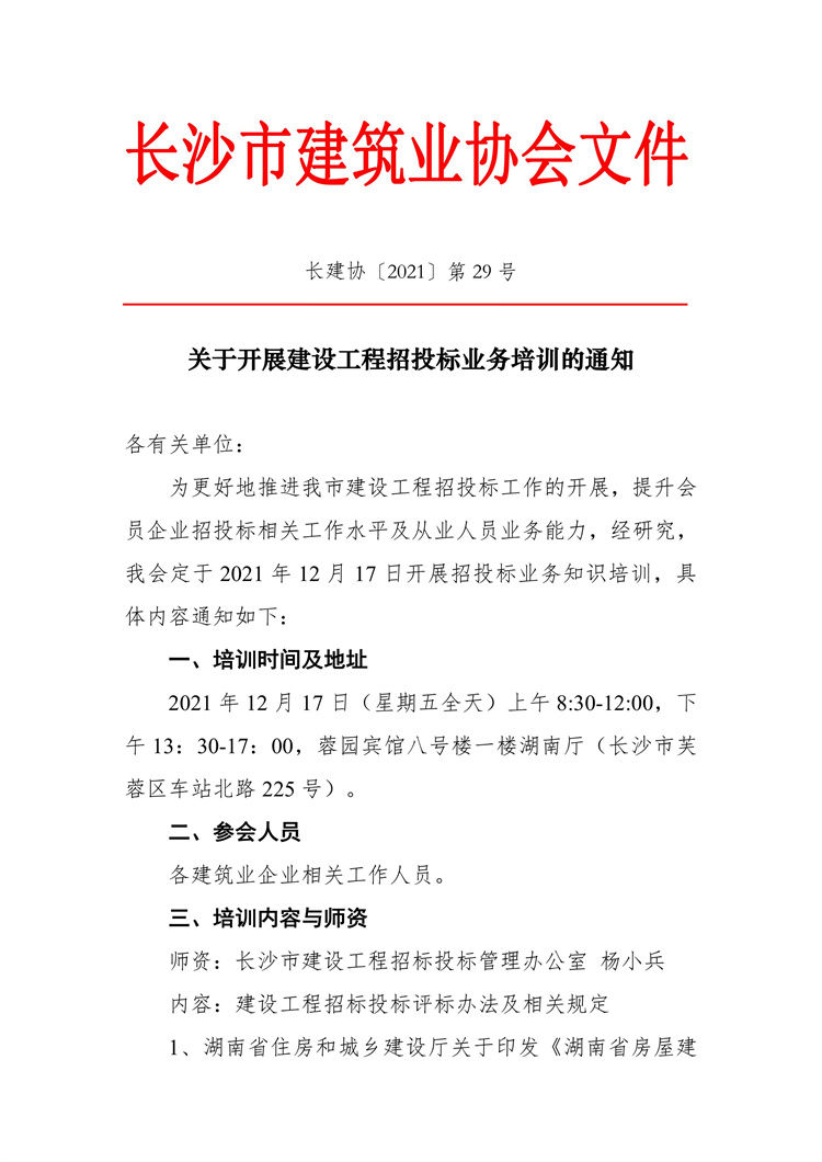 關(guān)于開展建設工程招投標業(yè)務培訓的通知